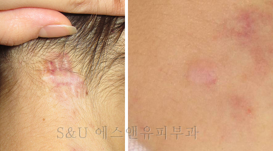 과거 수술로 없앴던 자리와 전기 소작술로 없앤 자리의 흉터를 비교해 보았다.