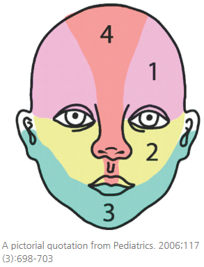 이러한 분절을 양측성으로 채우고 있거나, 2개 이상의 분절을 채우고 있거나, 1번 또는 4번의 이마 분절을 채우고 있는 혈관종은 PHACE 증후군일 가능성이 높습니다.