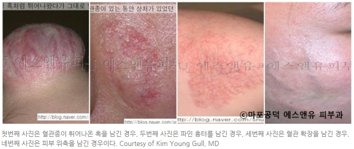 참고로 혈관종은 태반 이상이 있을 때, 조산아, 쌍둥이, 저체중아일 경우 더 흔히 생긴다.