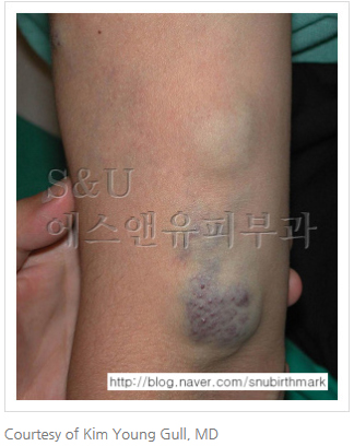 빨간색이 없고 푸른색만 띄는 깊은 심재성 혈관종과 비슷해 보이는데 아래 사진은 심재성 혈관종입니다.