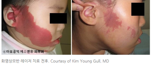 하지만 화염상모반과 치료가 같기 때문에 이를 감별하는 것이 중요하지는 않습니다.