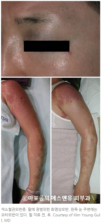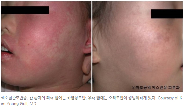 이를 색소혈관모반증 (phakomatosis pigmentovascularis)이라고 부릅니다.
