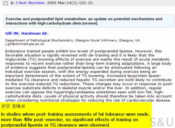 위의 영양생화학의 저명한 논문을 보더라도 운동후 48시간까지 우리 몸의 근육이 지방을 잘 대사한다는 것이 통설이다.