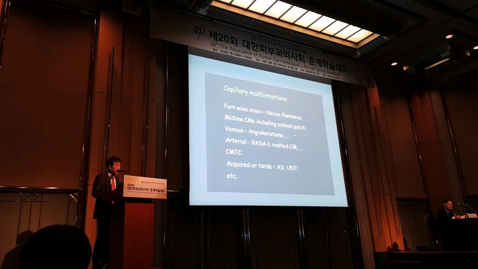 2018. 3. 25. 일요일김영걸원장은 지난 3월 25일 일요일 제 20회 대한피부과의사회 춘계심포지엄 [선천성 혈관질환 세션]에서 '화염상모반의 효과적인 레이저치료 팁' 을 주제로 강의를 하였습니다.강의에서는 화염상모반의 치료 노하우에 대해서 다루어졌습니다.
